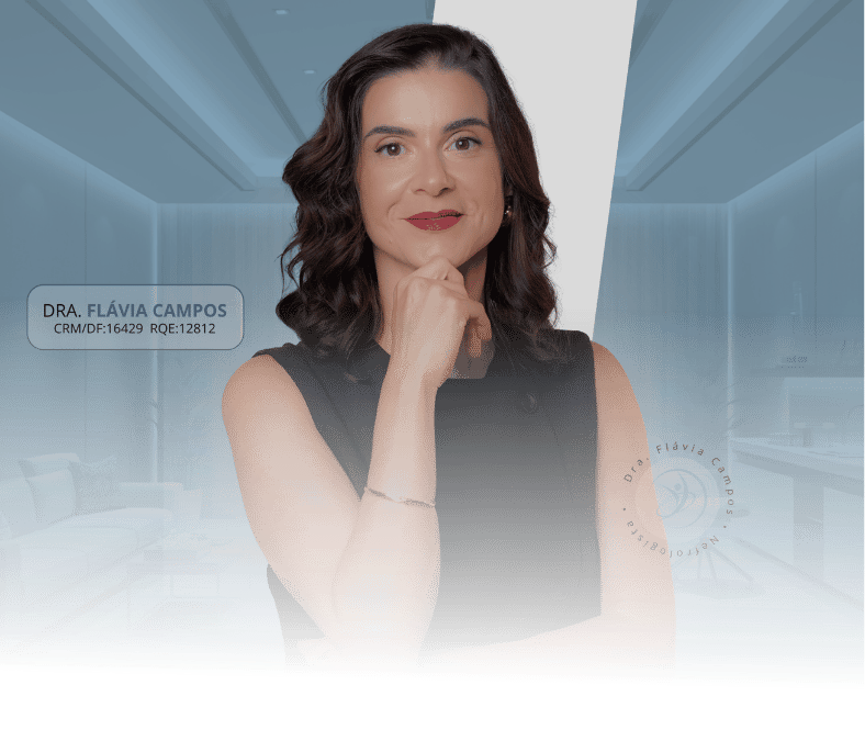 Prazer, sou a Dra. Flávia Campos. Sou médica nefrologista, com mais de 12 anos de experiência no cuidado de pacientes com doenças renais e condições associadas.
